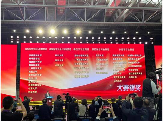 5月15日至16日,由教育部主办的第十届中国大学生医学技术技能大赛护理学专业赛道总决赛在天津举行。由银河娱乐博彩 和第一附属医院护理部共同培训的护理学专业学生左雨夜、马旋旋、谢欣雨、严伟玲组成的代表队荣获大赛银奖。