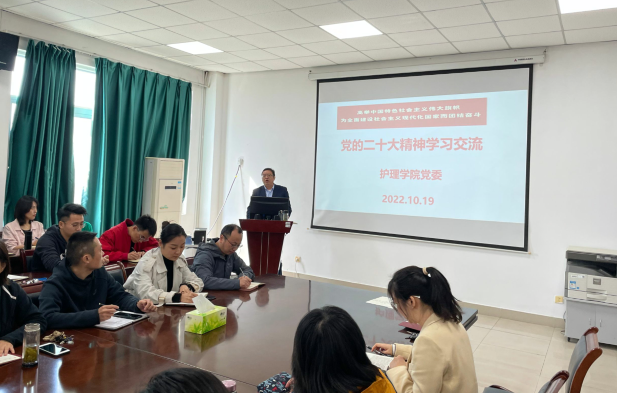 10月19日上午,护理银河娱乐博彩 召开党的二十大精神学习交流会,学院党委书记赵云峰领学,全院教职工参会并进行了学习心得交流。