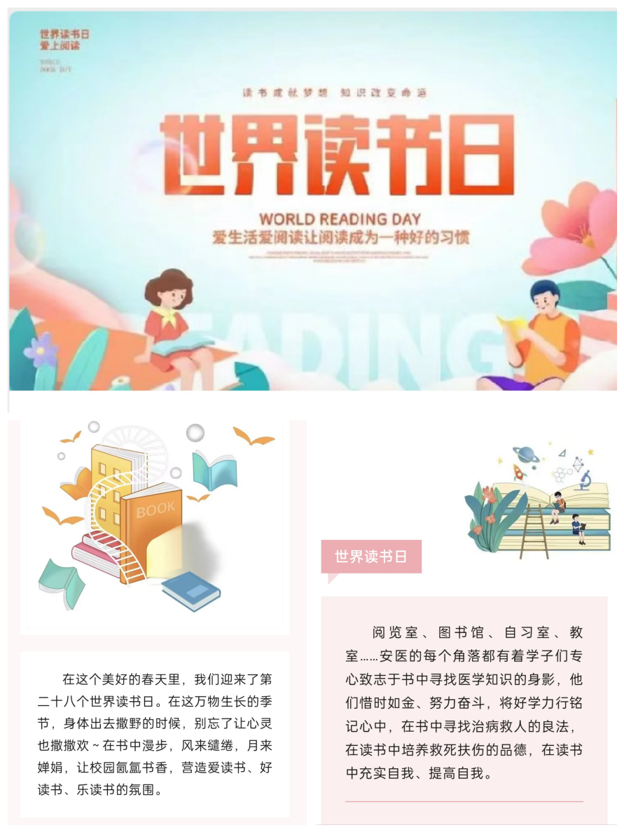 坚持正确思想导向,引导阅读习惯。该院依托微信公众平台,结合“世界读书日”这一重要时间节点,充分发挥网络育人载体的重要作用。通过对红色经典书籍、经典文学名著等好书内容的分享推送,加强对学生阅读方向指引,引导广大学子养成良好的阅读习惯,通过阅读树立正确的三观,从阅读中提高思想境界,拓展精神视野,汲取成长成才的奋进力量。