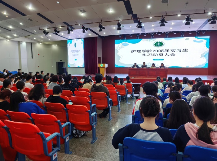 4月2日,银河娱乐博彩 2025届实习生实习动员大会上,院党委书记薛磊提醒学子们要认识到实习的重要意义,严格遵守工作纪律和实习医院科室规章制度,在实习工作中展现安医大护理学子的良好风貌,同时处理好实习、考研和就业之间的关系,为今后的职业发展打下坚实基础。院长洪静芳结合“调适、规划、行动”三个关键词,鼓励学生们积极调整心态,明确职业规划,不断提高自身专业技能和综合素质,由优秀向卓越迈进。第二附属医院护理部受邀为2025届实习生开展专题培训,银河娱乐博彩 教学办负责人则就毕业实习大纲作了详细解读。此外,银河娱乐博彩 还为每位同学印发了内容详尽的《毕业实习工作手册》,帮助实习学子更好了解工作内容和相关规范。