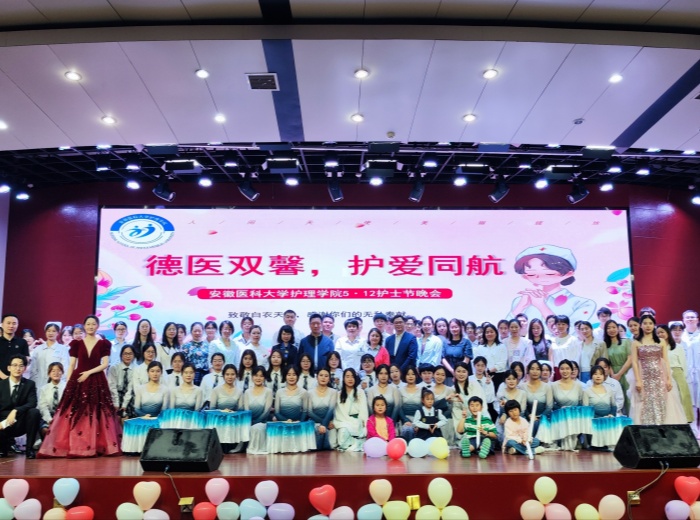 在南校区多功能报告厅举办主题为“德医双馨、护爱同航”的国际护士节文艺晚会,纪念第113个国际护士节的到来,弘扬南丁格尔精神。副校长吕雄文出席并观看演出。