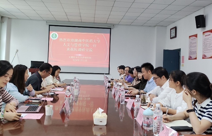 7月11日,湖南中医药大学人文与管理银河娱乐博彩 副院长胡正东一行5人到银河娱乐博彩官网银河娱乐博彩 ,就养老服务管理专业建设专题调研。银河娱乐博彩 党委书记薛磊、院长洪静芳、党委副书记王磊出席,副院长赵梅主持会议。