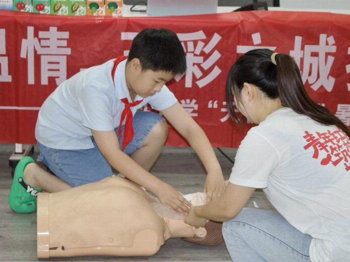 图2 团队志愿者带领儿童体验急救操作(银河娱乐博彩官网