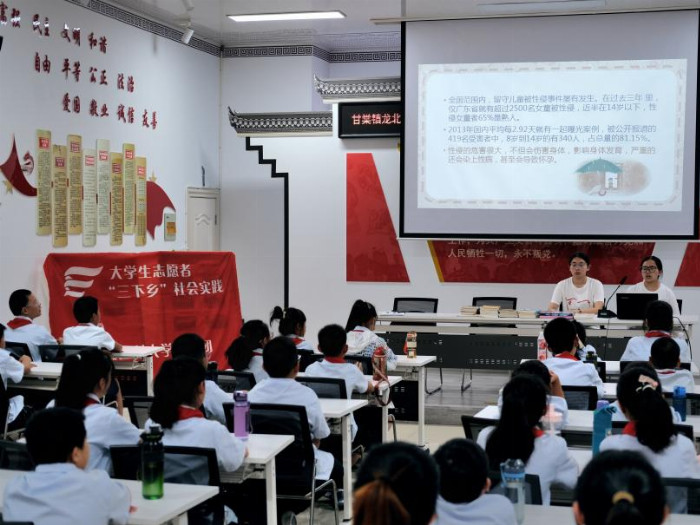 图1 团队为当地青少年儿童开展青春期生理知识科普课堂(银河娱乐博彩官网