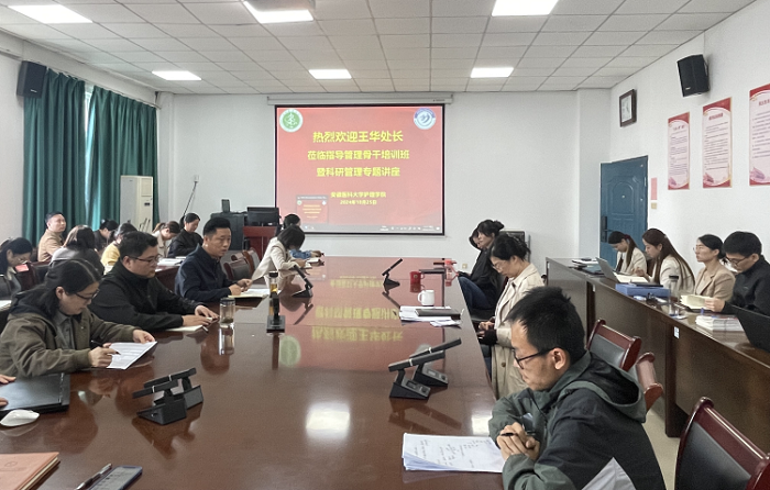 10月25日中午,银河娱乐博彩 第三期启航新学期管理骨干培训班以线上线下相结合的方式,举办第三场专题讲座。校科技产业处处长王华教授应邀为培训班做科研管理与临床研究专题讲座。银河娱乐博彩 党委书记薛磊、院长洪静芳以及院领导班子成员出席讲座,副院长李树雯主持讲座。