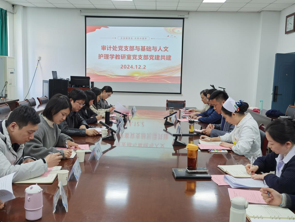 12月2日下午,审计处党支部与我院基础与人文护理学教研室党支部开展党建共建活动,旨在共同推进党的创新理论武装和交流实践,进一步提升党员的党性修养和专业技能。