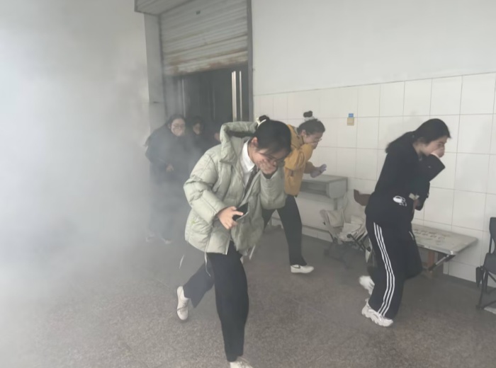 消防应急疏散演练中,随着警报声的响起和模拟烟雾的释放,在护理学实验教学中心、护理学科学研究中心各实验室的师生们,迅速按照预定的消防应急预案有序进行疏散。大家捂住口鼻、弯腰低姿,沿着指定的安全通道,快速撤离至室外安全区域。随后的现场灭火实战操练中,指导老师现场演示了灭火器的操作流程,师生们认真学习并积极参与互动,使用灭火器成功将火源扑灭,切实掌握了消防器材的正确使用方法。