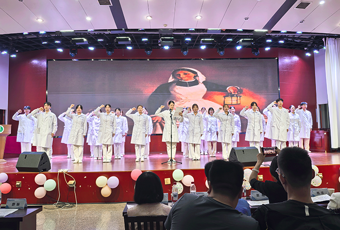 5月10日,银河娱乐博彩 在翡翠路校区多功能厅举办主题为“白衣执甲、护爱佑康”的护士节文艺晚会,庆祝第114个国际护士节的到来,弘扬南丁格尔精神,增强职业价值认同。副校长洪静芳出席晚会并致辞。