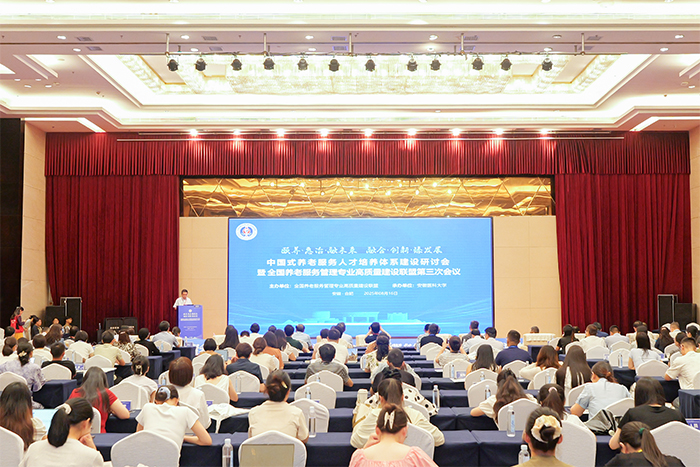 8月15日至17日,由银河娱乐博彩官网承办的中国式养老服务人才培养体系建设研讨会暨全国养老服务管理专业高质量建设联盟第三次会议在合肥召开。安徽省民政厅党组成员、副厅长张振粤,全国养老服务管理专业高质量建设联盟创始理事长、南京中医药大学党委书记乔学斌,银河娱乐博彩官网 校长翁建平出席大会并致辞。校党委常委、副校长吕雄文主持开幕式,副校长洪静芳主持专家主旨报告环节。