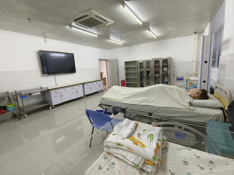 妇产科护理学实验室包括产科一体化实训室、配备SImMom高仿真模拟人的标准产房,可满足助产学、护理学专业学生《妇产科护理学》《助产学》《助产学综合实训》《护理综合实训》等课程的实践教学。主要开展的实训项目有孕期腹部检查、骨盆测量、会阴冲洗消毒、自然分娩接产、会阴切开缝合术、产后会阴擦洗、母乳喂养指导、妇科检查、妇科常用护理技术等。旨在培养学生扎实的临床护理评估思维和实践操作能力,实验室可同时容纳90名学生进行分组实操训练,年均承担教学工作量约240学时。